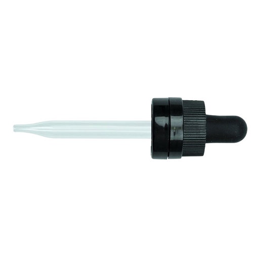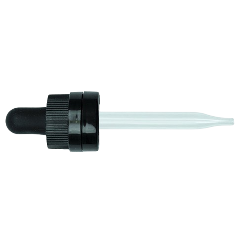 18-415 Black CRC Tamper Evident Dropper with 76 mm Glass Pipette (Fits 30 ml Euro Round Bottle) - 1000/Case
