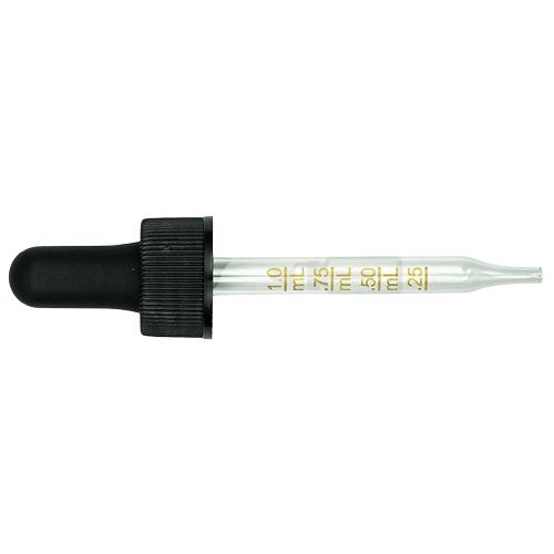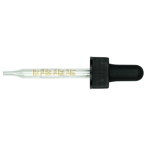 20-400 Black Dropper with 76 mm Graduated Glass Pipette (Fits 1 oz Boston Round Bottle) - 1000/Case